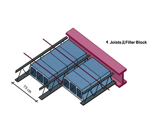 برای پرکردن فضای خالی بین تیرچه ها از قالب های ثابت مانند بلوک های سیمانی، پلی استایرن، طاق ضربی ، قالب های موقت فولادی (کامپوزیت ) و قالب پلاستیکی و یا هر پرکننده سبک استفاده می شود.